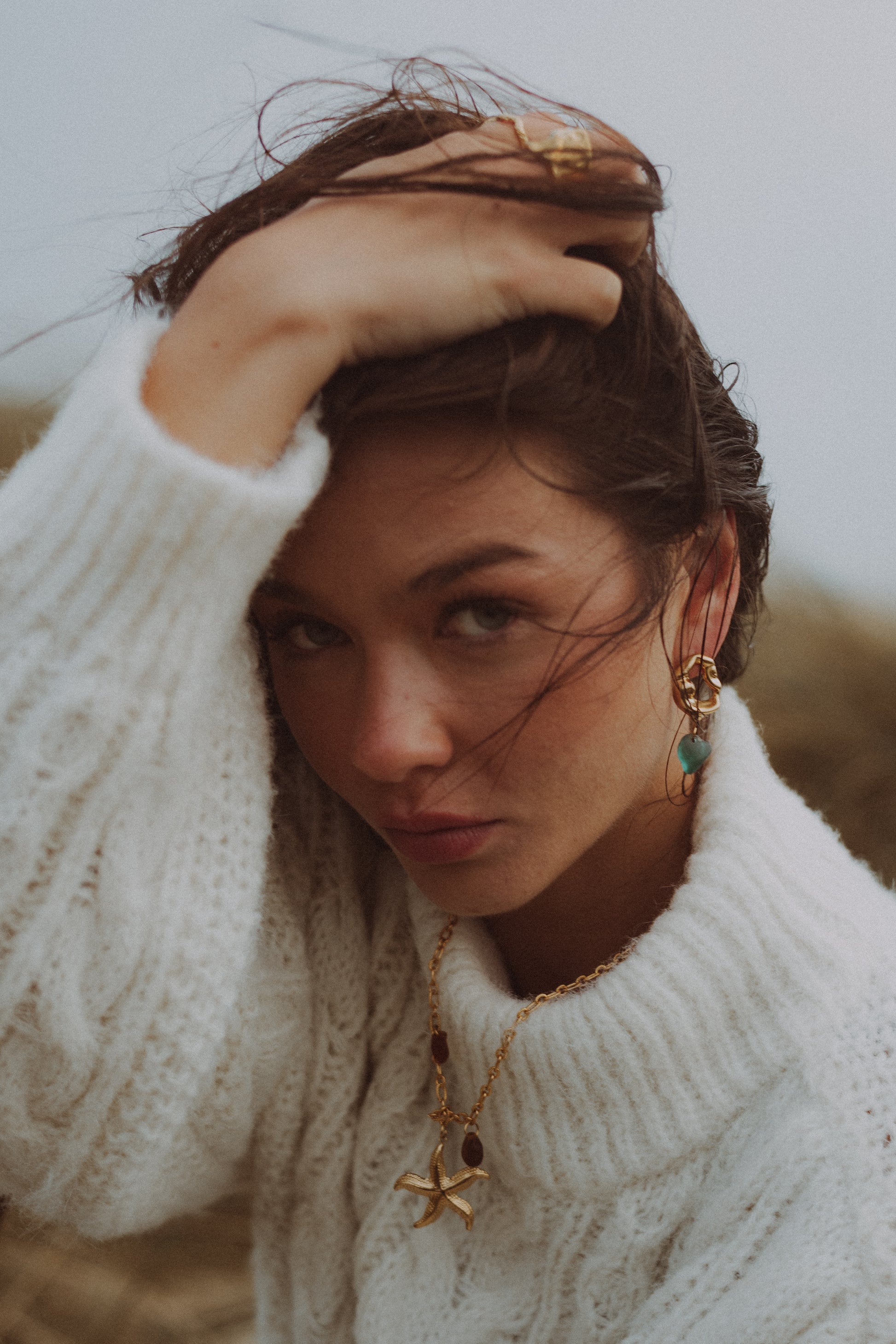 Øreringene er håndlavet med ægte, opcyklet sea glass og et design inspireret af havets bevægelse.