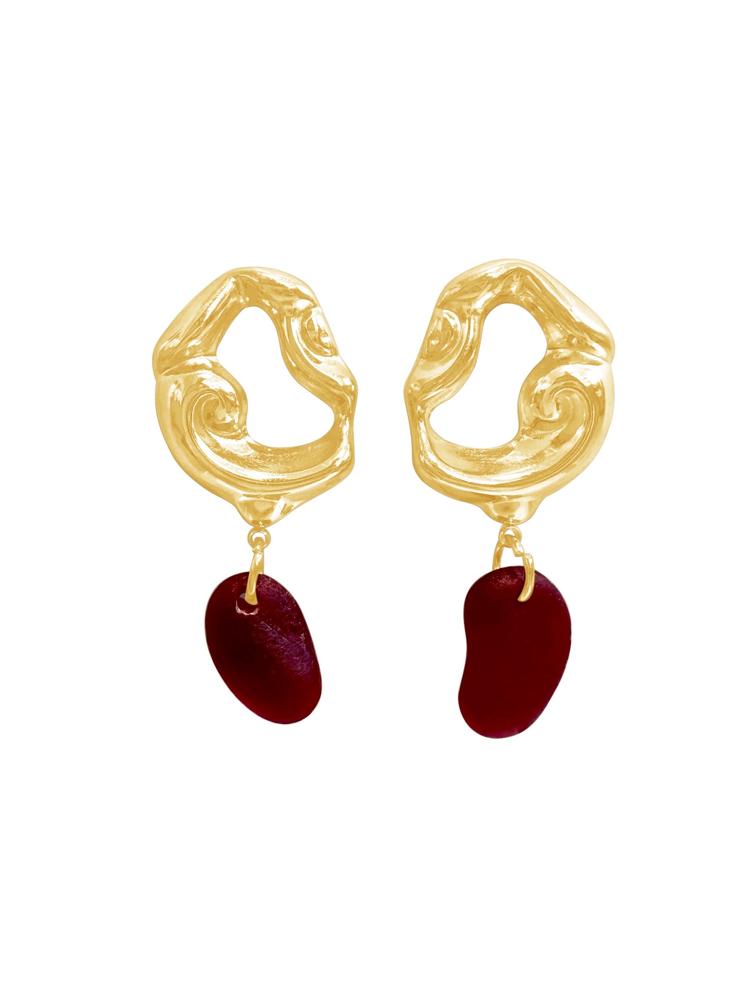 Øreringene er håndlavet med ægte, opcyklet sea glass og et design inspireret af havets bevægelse.